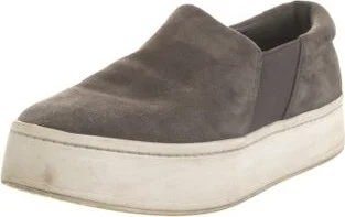 Vince Suede Slip-On Sneakers Grey Rubber Trim Round-Toes Platform