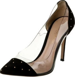 Gianvito Rossi Suede Pumps Black PVC Trim Semi-Pointed Toes with Studded Accents Designer Fit: Pumps by Gianvito Rossi typically run a half size small. Read more
