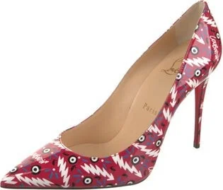 Christian Louboutin Patent Leather Pumps Red Printed Pointed-Toes Designer Fit: This style typically runs a half size to a full size small.