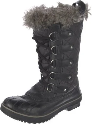 Sorel Leather Mid-Calf Combat Boots Black Square-Toes Lace-Up Closure at Uppers Unfortunately, due to restrictions, this item may not be eligible for shipping in all areas. Read more