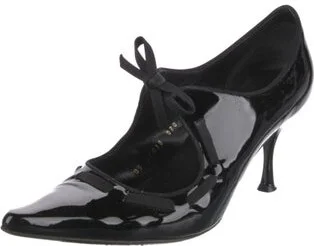Salvatore Ferragamo Patent Leather Pumps Black Grosgrain & Bow Accents Semi-Pointed Toes Lace-Up Closure at Uppers Fit: This style typically runs a half size small. Read more