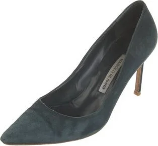Manolo Blahnik Suede Pumps Green Semi-Pointed Toes Includes Box Fit: This style typically runs narrow and a half size small.