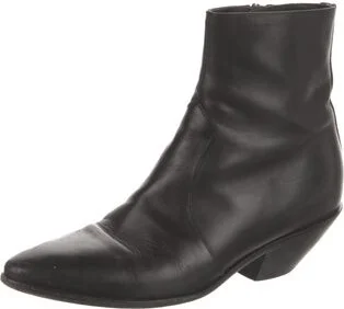 Saint Laurent Leather Ankle Boots Black Semi-Pointed Toes Concealed Zip Closure at Sides Fit: This style typically runs a half size small. Unfortunately, due to restrictions, this item may not be eligible for shipping in all areas.
