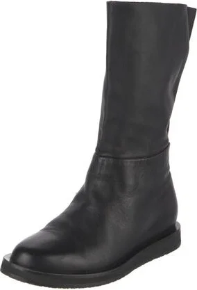 Tamara Mellon Leather Mid-Calf Boots Black Round-Toes Designer Fit: Boots by Tamara Mellon typically run a half size small. Unfortunately, due to restrictions, this item may not be eligible for shipping in all areas.
