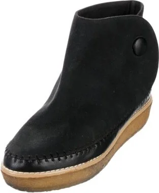 Stella McCartney Suede Ankle Boots Black Round-Toes Platform Snap Closure at Sides Read more