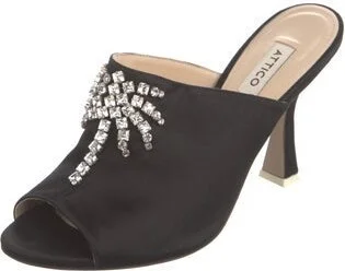 Attico Satin Mules Black Peep-Toes with Crystal Embellishments Designer Fit: Pumps by Attico typically run true to size.