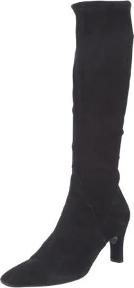 Salvatore Ferragamo Suede Knee-High Boots Black Square-Toes Designer Fit: Boots by Salvatore Ferragamo typically run a half size small. Read more