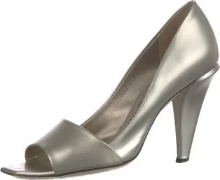 Salvatore Ferragamo Leather D'Orsay Pumps Silver Peep-Toes Includes Box & Dust Bag Fit: This style typically runs a half size small. Unfortunately, due to restrictions, this item may not be eligible for shipping in all areas.