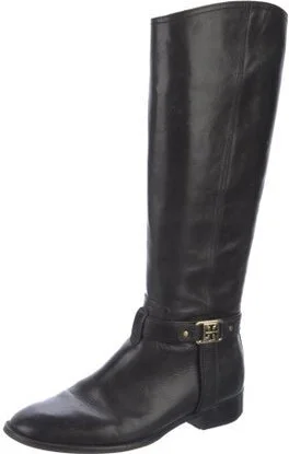 Tory Burch Leather Knee-High Riding Boots Black Round-Toes Wrap-Around Straps Designer Fit: This designer typically runs true to size. Unfortunately, due to restrictions, this item may not be eligible for shipping in all areas.