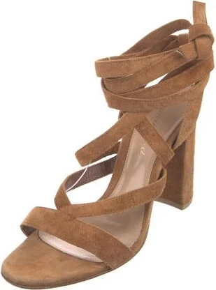 Gianvito Rossi Suede Slingback Sandals Brown Wrap-Around Straps & Tie Closures