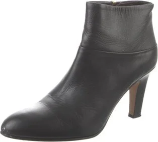 Chloé Leather Ankle Boots Black Semi-Pointed Toes Exposed Zip Closure at Sides Includes Dust Bag Fit: This style typically runs a half size small. Unfortunately, due to restrictions, this item may not be eligible for shipping in all areas.
