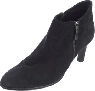 Aquatalia Suede Ankle Boots Black Semi-Pointed Toes Exposed Zip Closure at Sides Includes Box Fit: Boots by Aquatalia typically run small, consider taking a half size up. Read more