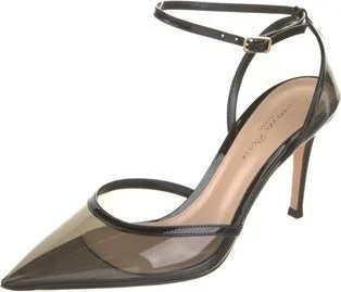 Gianvito Rossi PVC D'Orsay Pumps Black Leather & Patent Leather Trim Pointed-Toes with Leather Trim Embellishment Wrap-Around Straps & Buckle Closure at Ankles Includes Box & Dust Bag Designer Fit: Pumps by Gianvito Rossi typically run a half size small.