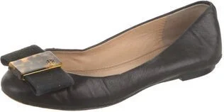 Tory Burch Leather Ballet Flats Black Round-Toes with Bow Accents Designer Fit: This designer typically runs true to size. Unfortunately, due to restrictions, this item may not be eligible for shippin Read more