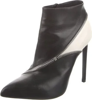 Saint Laurent Leather Ankle Boots Black Colorblock Pattern Pointed-Toes Concealed Zip Closure at Sides Fit: This style typically runs a half size small. Unfortunately, due to restrictions, this item may not be eligible for shipping in all areas.