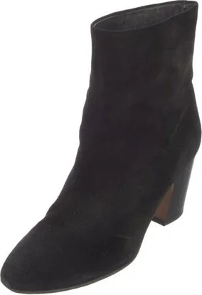 Vince Suede Ankle Boots Black Leather Trim Round-Toes Concealed Zip Closure at Sides Includes Dust Bag