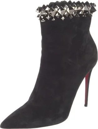 Christian Louboutin Suede Ankle Boots Black Pointed-Toes with Studded Accents Exposed Zip Closure at Sides Designer Fit: This style typically runs a full size small.