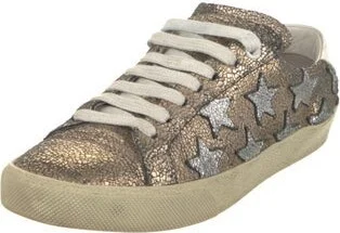 Saint Laurent Leather Low Top Sneakers Gold Rubber Trim Round-Toes Lace-Up Closure at Uppers Unfortunately, due to restrictions, this item may not be eligible for shipping in all areas. Read more