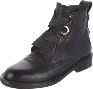 Zadig & Voltaire Leather Ankle Combat Boots Black Round-Toes Lace-Up Closure at Uppers Unfortunately, due to restrictions, this item may not be eligible for shipping in all areas. Read more