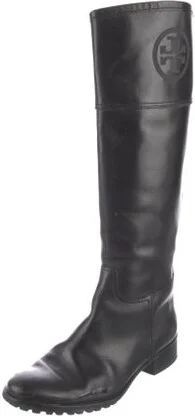 Tory Burch Leather Knee-High Riding Boots Black Round-Toes Designer Fit: This designer typically runs true to size. Unfortunately, due to restrictions, this item may not be eligible for shipping in al Read more