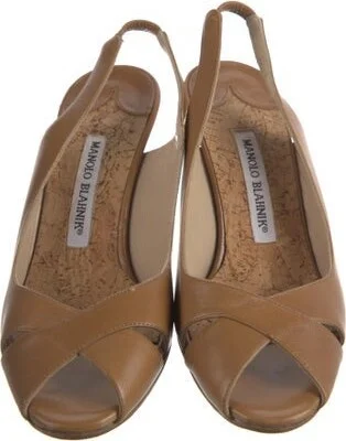 Manolo Blahnik Leather Slingback Sandals Brown Straps Fit: This style typically runs narrow and a half size small. Unfortunately, due to restrictions, this item may not be eligible for shipping in all areas.