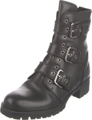Prada Leather Mid-Calf Combat Boots Black Round-Toes Multistrap Fit: This style typically runs a half size small. Unfortunately, due to restrictions, this item may not be eligible for shipping in all areas.