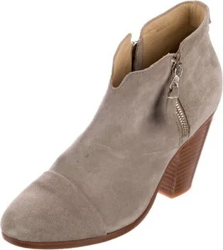 Rag & Bone Suede Ankle Boots Grey Round-Toes Exposed Zip Closure at Sides Designer Fit: Boots by Rag & Bone typically run a half size small.