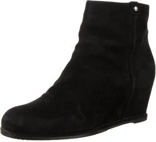 Stuart Weitzman Suede Ankle Boots Black Round-Toes Platform Exposed Zip Closure at Sides Designer Fit: This designer typically runs true to size.