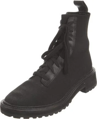 Loeffler Randall Ankle Combat Boots Black Round-Toes Lace-Up Closure at Uppers