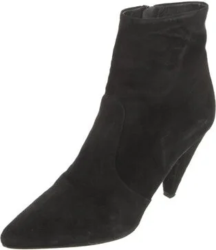 Prada Suede Ankle Boots Black Pointed-Toes Concealed Zip Closure at Sides Fit: This style typically runs a half size small. Read more