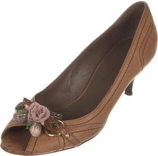 Valentino Leather Pumps Brown Peep-Toes with Beaded Accents Designer Fit: Pumps by Valentino typically run a half size small. Unfortunately, due to restrictions, this item may not be eligible for ship Read more