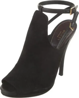 Gucci Suede Sandals Black Leather Trim Platform Wrap-Around Straps & Buckle Closure at Ankles Read more