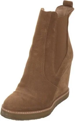 Veronica Beard Suede Ankle Chelsea Boots Brown Round-Toes Platform
