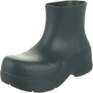 Bottega Veneta Rubber Ankle Rain Boots Blue Leather Trim Square-Toes Platform Includes Box & Dust Bag Read more