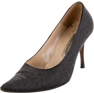 Manolo Blahnik Wool Pumps Grey Pointed-Toes Fit: This style typically runs narrow and a half size small. Read more