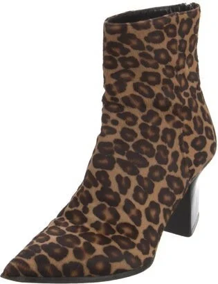 Tamara Mellon Ponyhair Ankle Boots Brown Animal Print Pointed-Toes Zip Closures at Shafts Designer Fit: Boots by Tamara Mellon typically run a half size small.