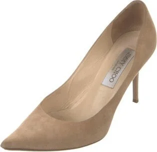 Jimmy Choo Suede Pumps Neutrals Leather Trim Pointed-Toes Fit: This style typically runs a half size small.