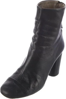 Isabel Marant Leather Ankle Boots Black Square-Toes Platform Concealed Zip Closure at Sides Unfortunately, due to restrictions, this item may not be eligible for shipping in all areas. Read more