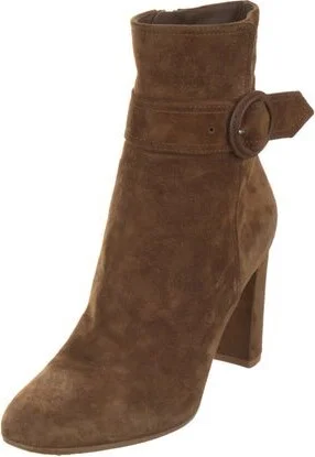 Gianvito Rossi Suede Ankle Boots Brown Square-Toes Wrap-Around Straps & Concealed Zip Closure at Sides Designer Fit: Boots by Gianvito Rossi typically run a half size small. Read more