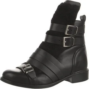 Iro Leather Ankle Combat Boots Black Round-Toes Multistrap & Buckle Closure at Sides Includes Box Unfortunately, due to restrictions, this item may not be eligible for shipping in all areas.