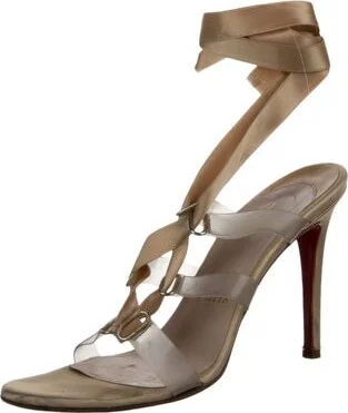 Christian Louboutin Satin Sandals Neutrals PVC & Suede Trim Wrap-Around Straps & Tie Closures Designer Fit: This style typically runs a half size to a full size small. Read more