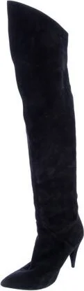 Saint Laurent Suede Over-The-Knee Boots Black Pointed-Toes Concealed Zip Closure at Sides Fit: This style typically runs a half size small. Read more