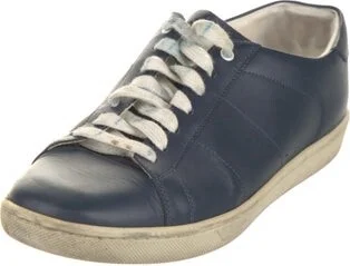 Saint Laurent Leather Low Top Sneakers Blue Rubber Trim Round-Toes Lace-Up Closure at Uppers Unfortunately, due to restrictions, this item may not be eligible for shipping in all areas. Read more
