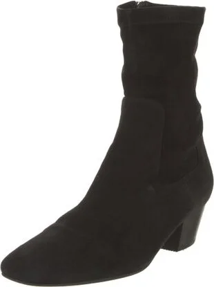 Aquatalia Suede Mid-Calf Sock Boots Black Square-Toes Exposed Zip Closure at Sides Fit: Boots by Aquatalia typically run small, consider taking a half size up.