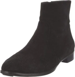 Prada Suede Ankle Boots Black Round-Toes Exposed Zip Closure at Sides Includes Box Fit: This style typically runs a half size small.