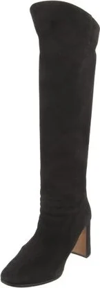 Prada Suede Knee-High Boots Black Square-Toes Concealed Zip Closure at Sides Fit: This style typically runs a half size small. Read more