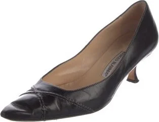 Manolo Blahnik Leather Pumps Brown Semi-Pointed Toes Fit: This style typically runs narrow and a half size small. Unfortunately, due to restrictions, this item may not be eligible for shipping in all areas.