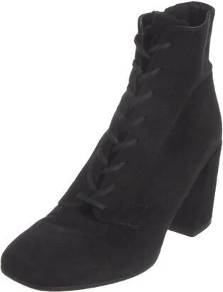 Vince Suede Ankle Lace-Up Boots Black Square-Toes Concealed Zip Closure at Sides Read more