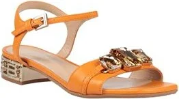 ankle strap sandals, leather, solid color with appliqués, crystals, leather lining, buckle fastening, square toe, square heel, rubber cleated sole, contains non-textile parts of animal origin , Color: Orange