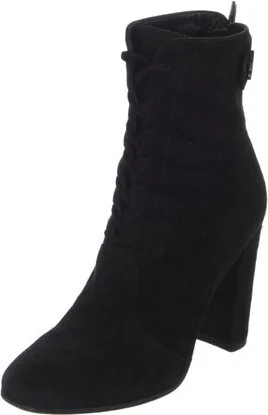 Gianvito Rossi Suede Ankle Lace-Up Boots Black Square-Toes Zip Closures at Shafts Designer Fit: Boots by Gianvito Rossi typically run a half size small.